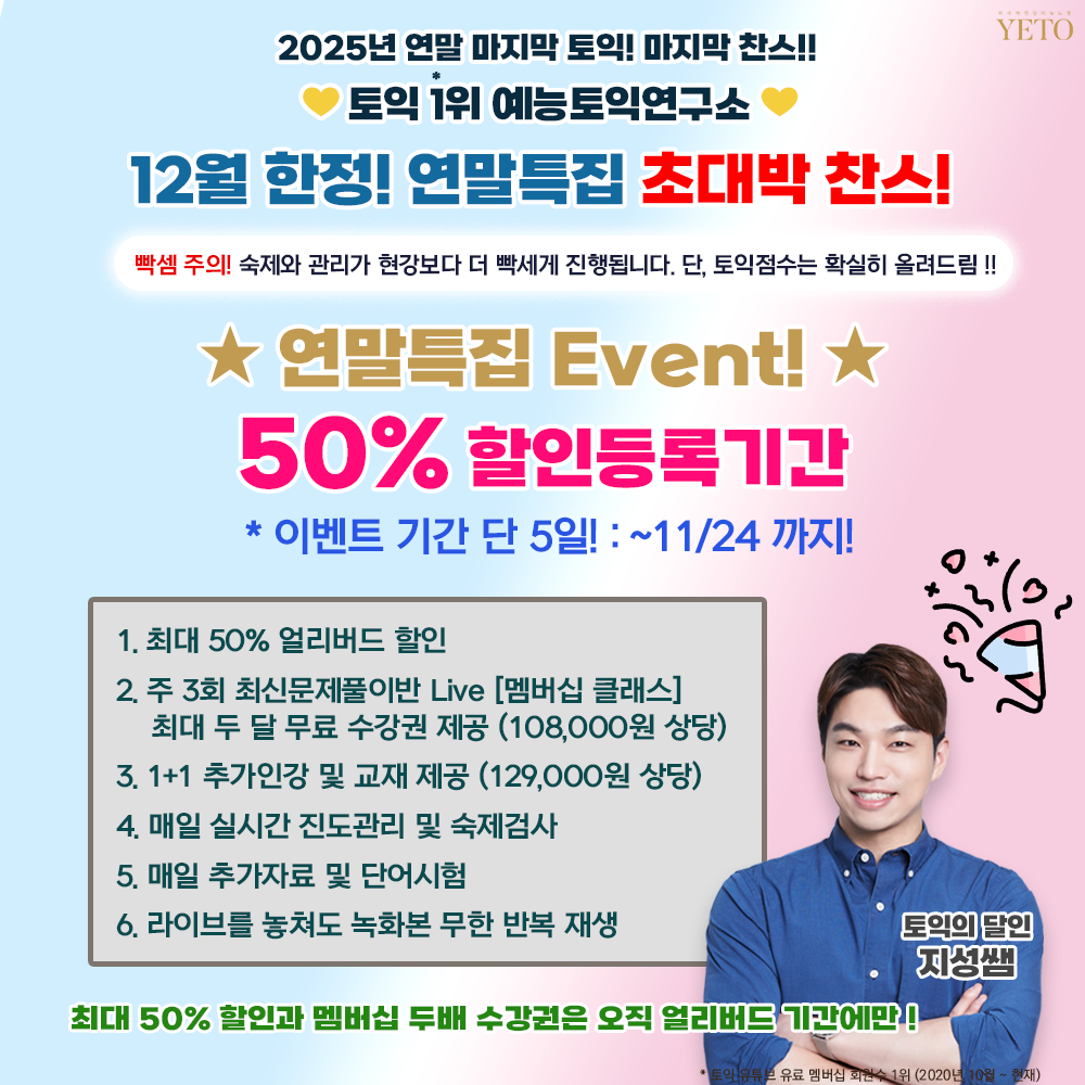 [11/24 조기개강 특별반] 12/7 토익 대비 2주완성 스파르타 스터디반