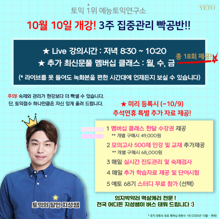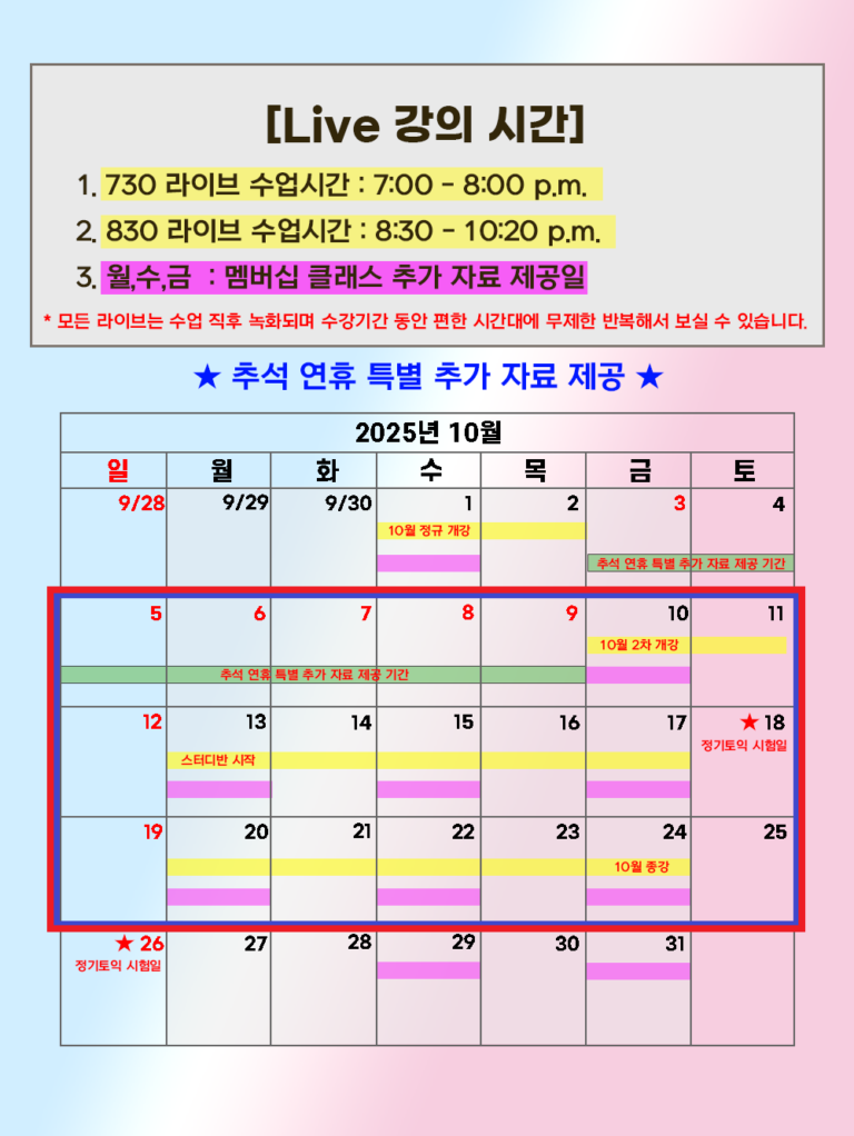 🥰 10월 수강생 전원에게는 추석연휴 특별자료가 제공됩니다. 연휴에도 공백 없이 공부해요!