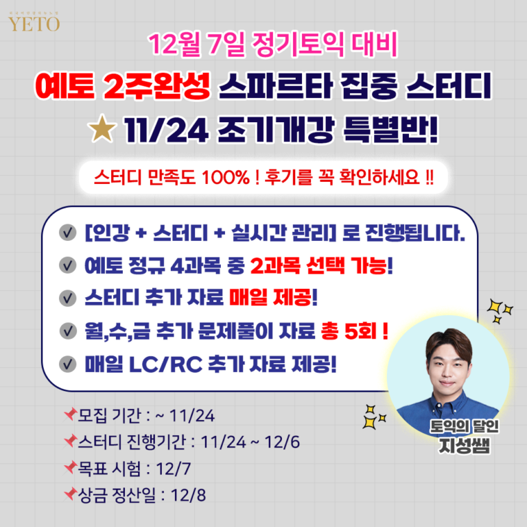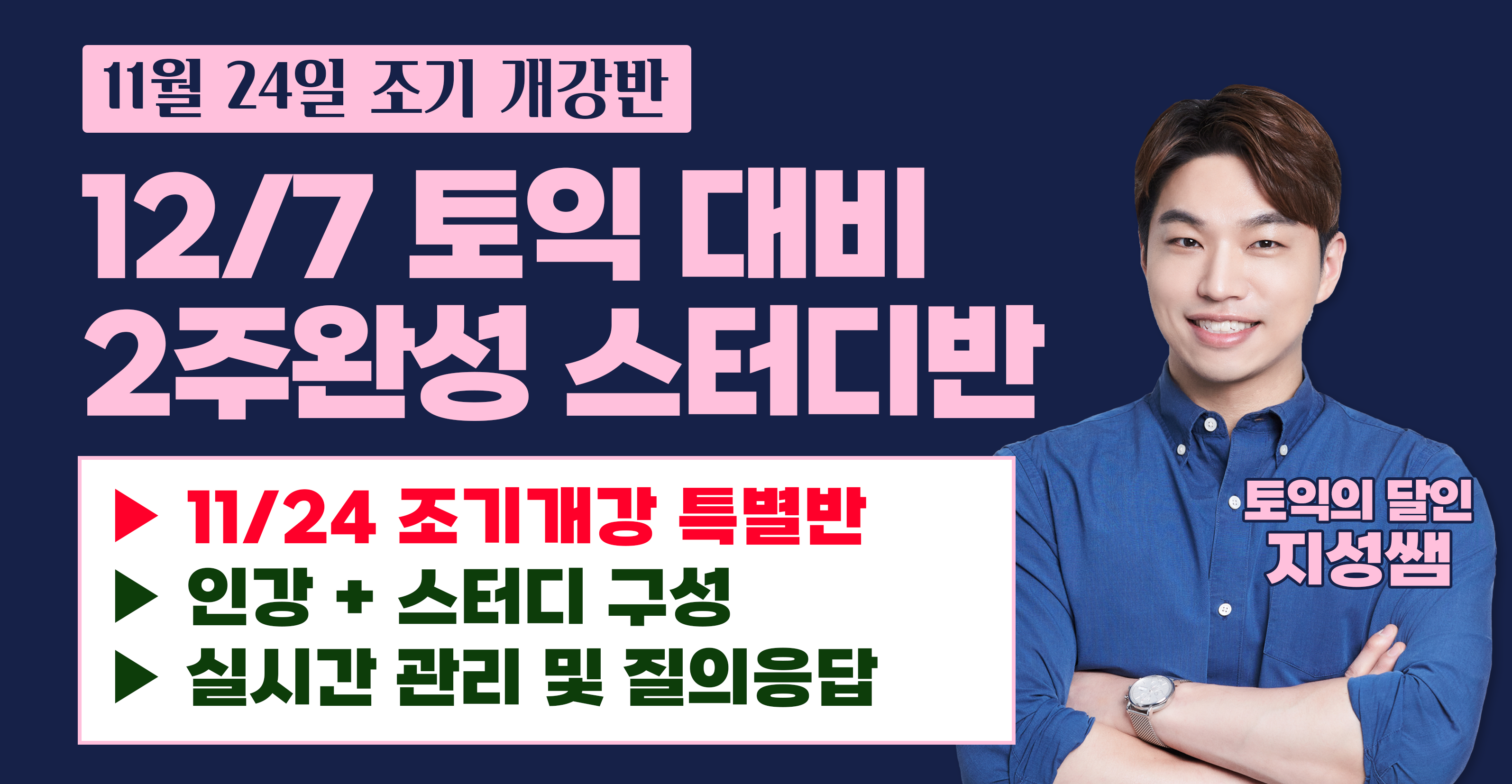 ✅ 11/24에 개강하는 조기 특별반 입니다. (12/7 토익 대비 2주 완성반)