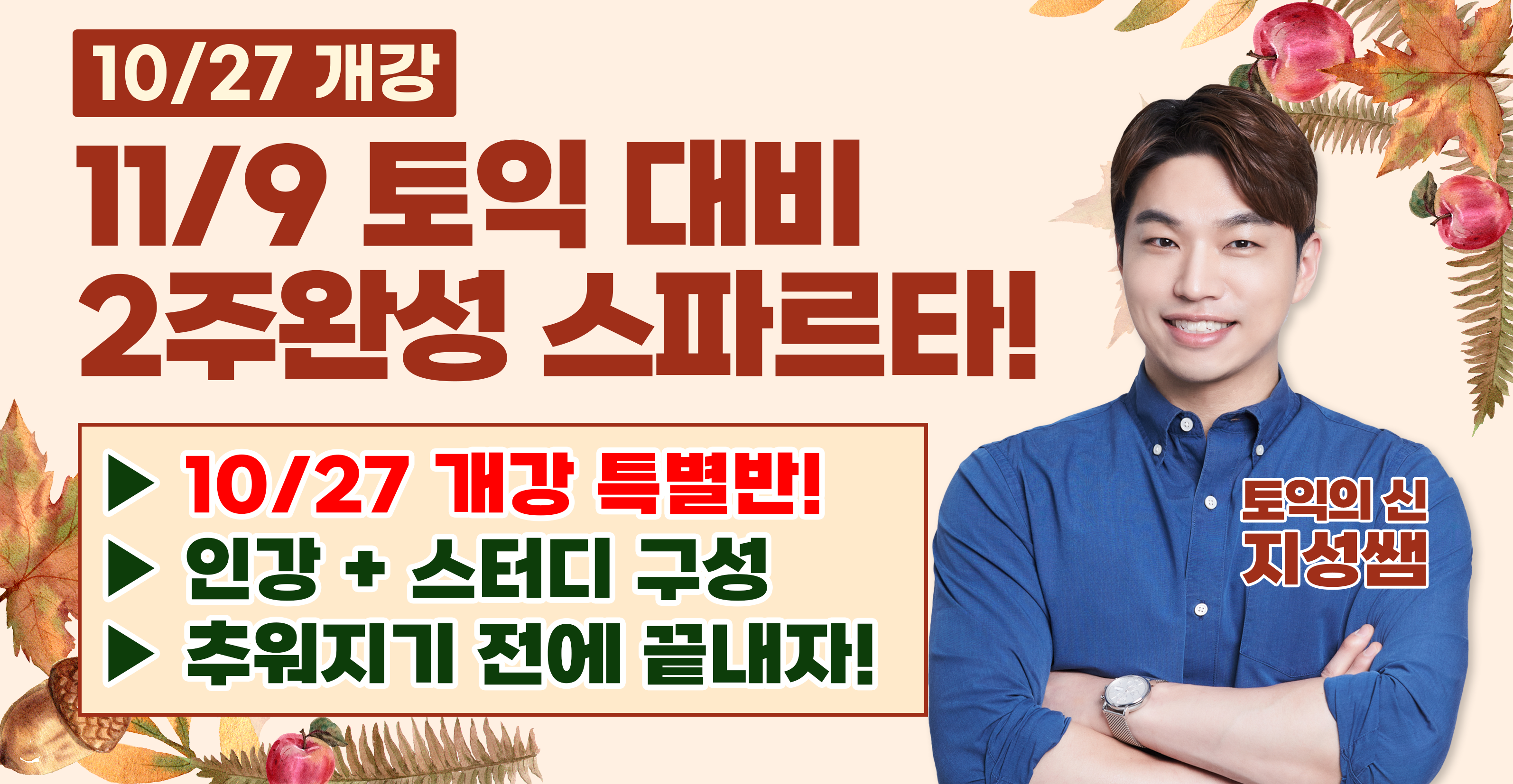 ✅ 10/27에 개강하는 조기 특별반 입니다. (11/9 토익 대비 2주 완성반)