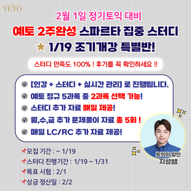 ✅ 1/19에 개강하는 조기 특별반 입니다. (2/1 토익 대비 2주 완성반)