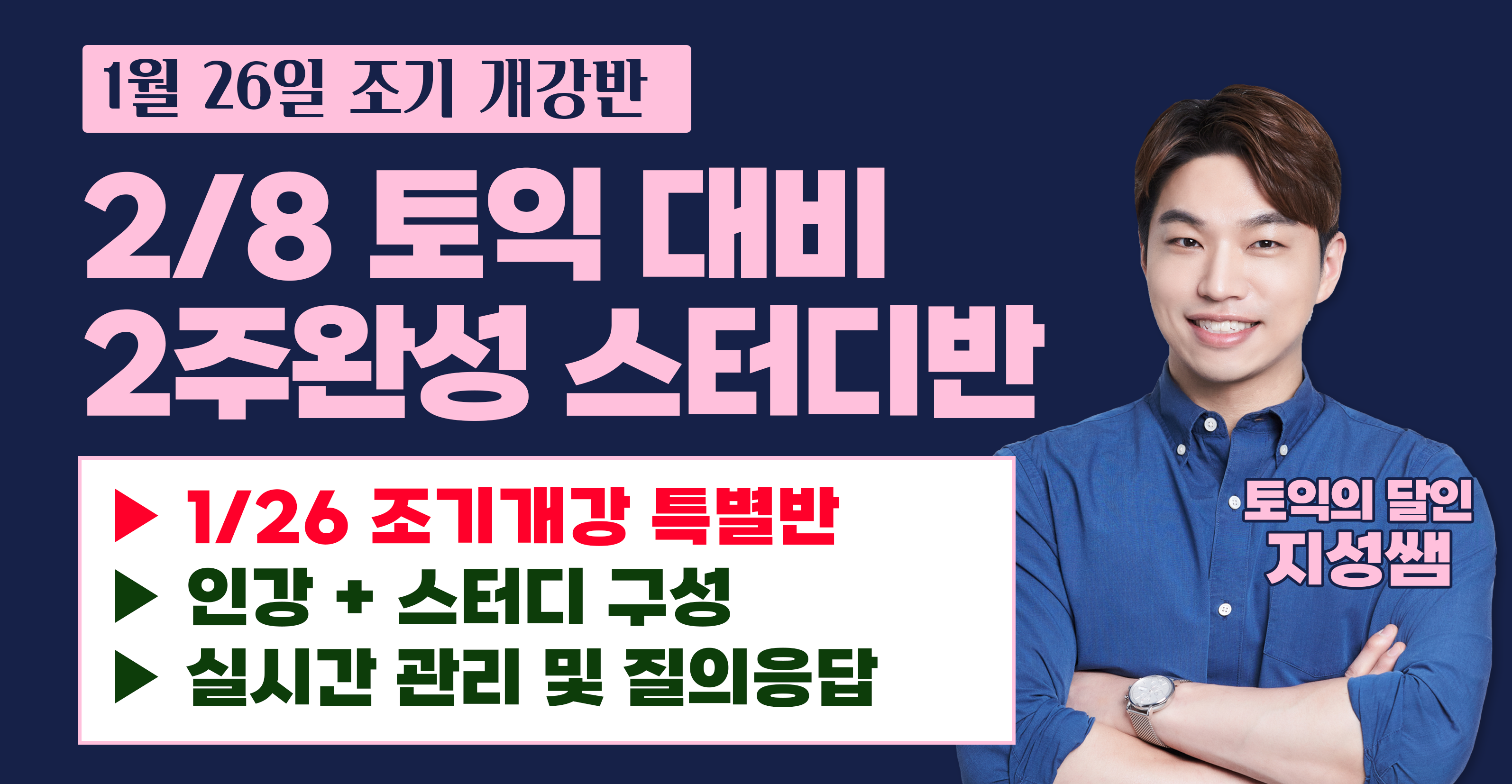 ✅ 1/26에 개강하는 조기 특별반 입니다. (2/8 토익 대비 2주 완성반)