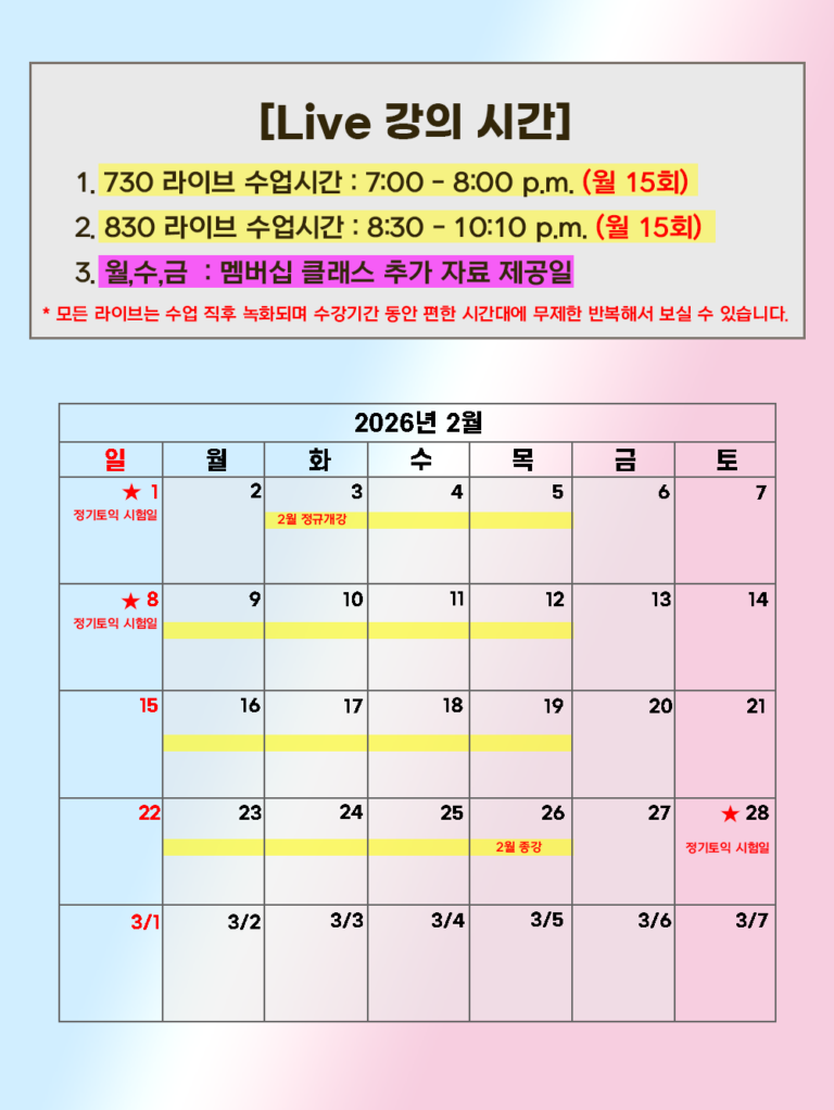 4. 즉, 개강전까지 월수금 멤버십 문제풀이 강의와 추가 단어문제를 매일 풀면서 준비하는 것이 무조건 이득입니다 😊