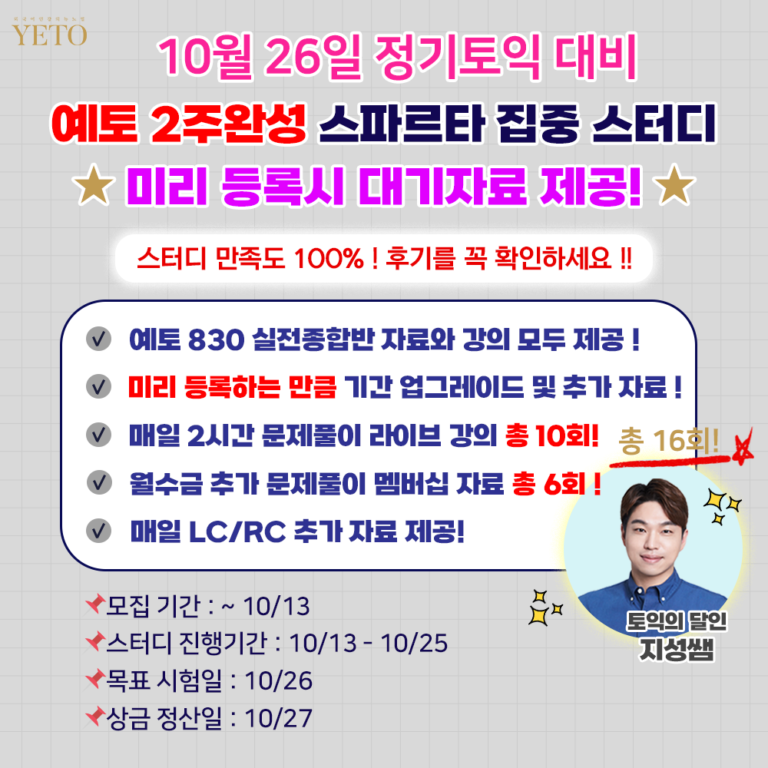 [10/26 토익 대비] 2주완성 스파르타 스터디 68기 신청기간 (10/13 신청 마감) 00:00:00