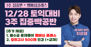 [12/9 개강] 12/29 토익 대비 3주 집중 문제풀이반